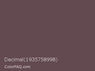 Decimal 1935758998 Color is a normal rose color and the nearest color is Don Juan #5d4c51. Hex code #634950 and RGB value is rgb(99,73,80). In RGB color space, this color is composed of 39% red, 29% green, 31% blue, In CMYK color space, this color is composed of 0% cyan, 26% magenta, 19% yellow , 61% black , In HSL color space, this color has a hue angle of 344° , 15% saturation and 34% lightness.