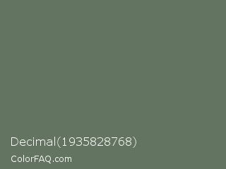 Decimal 1935828768 Color is a normal green color and the nearest color is Willow Grove #65745d. Hex code #637460 and RGB value is rgb(99,116,96). In RGB color space, this color is composed of 39% red, 45% green, 38% blue, In CMYK color space, this color is composed of 15% cyan, 0% magenta, 17% yellow , 55% black , In HSL color space, this color has a hue angle of 111° , 9% saturation and 42% lightness.