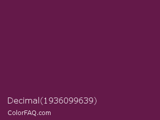 Decimal 1936099639 Color is a dark magenta color and the nearest color is Tawny Port #692545. Hex code #641949 and RGB value is rgb(100,25,73). In RGB color space, this color is composed of 39% red, 10% green, 29% blue, In CMYK color space, this color is composed of 0% cyan, 75% magenta, 27% yellow , 61% black , In HSL color space, this color has a hue angle of 322° , 60% saturation and 25% lightness.