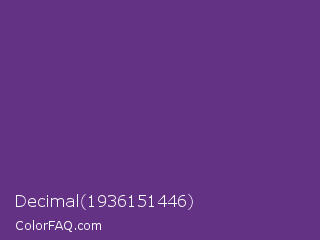 Decimal 1936151446 Color is a normal purple color and the nearest color is Eminence #6c3082. Hex code #643284 and RGB value is rgb(100,50,132). In RGB color space, this color is composed of 39% red, 20% green, 52% blue, In CMYK color space, this color is composed of 24% cyan, 62% magenta, 0% yellow , 48% black , In HSL color space, this color has a hue angle of 277° , 45% saturation and 36% lightness.