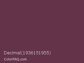 Decimal 1936151955 Color is a dark rose color and the nearest color is Wine Dregs #673147. Hex code #643349 and RGB value is rgb(100,51,73). In RGB color space, this color is composed of 39% red, 20% green, 29% blue, In CMYK color space, this color is composed of 0% cyan, 49% magenta, 27% yellow , 61% black , In HSL color space, this color has a hue angle of 333° , 32% saturation and 30% lightness.