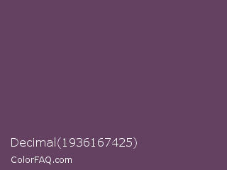 Decimal 1936167425 Color is a normal magenta color and the nearest color is English Violet #563c5c. Hex code #644161 and RGB value is rgb(100,65,97). In RGB color space, this color is composed of 39% red, 25% green, 38% blue, In CMYK color space, this color is composed of 0% cyan, 35% magenta, 3% yellow , 61% black , In HSL color space, this color has a hue angle of 305° , 21% saturation and 32% lightness.
