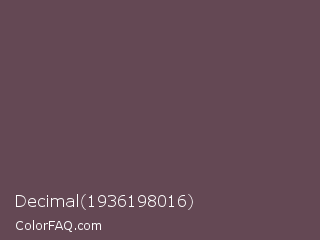 Decimal 1936198016 Color is a normal rose color and the nearest color is Don Juan #5d4c51. Hex code #644854 and RGB value is rgb(100,72,84). In RGB color space, this color is composed of 39% red, 28% green, 33% blue, In CMYK color space, this color is composed of 0% cyan, 28% magenta, 16% yellow , 61% black , In HSL color space, this color has a hue angle of 334° , 16% saturation and 34% lightness.