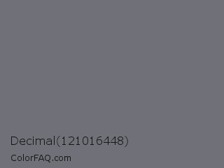 Decimal 121016448 Color is a normal blue color and the nearest color is Nickel #727472. Hex code #707178 and RGB value is rgb(112,113,120). In RGB color space, this color is composed of 44% red, 44% green, 47% blue, In CMYK color space, this color is composed of 7% cyan, 6% magenta, 0% yellow , 53% black , In HSL color space, this color has a hue angle of 233° , 3% saturation and 45% lightness.