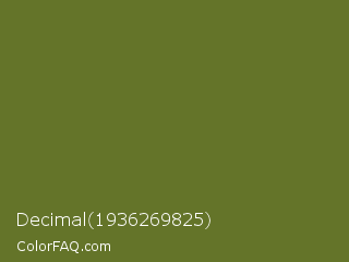 Decimal 1936269825 Color is a normal lime color and the nearest color is Fern Frond #657220. Hex code #647429 and RGB value is rgb(100,116,41). In RGB color space, this color is composed of 39% red, 45% green, 16% blue, In CMYK color space, this color is composed of 14% cyan, 0% magenta, 65% yellow , 55% black , In HSL color space, this color has a hue angle of 73° , 48% saturation and 31% lightness.