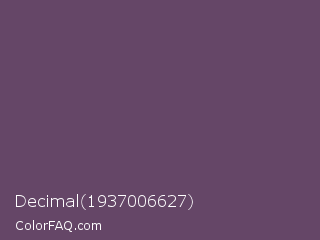 Decimal 1937006627 Color is a normal magenta color and the nearest color is Scarpa Flow #585562. Hex code #654667 and RGB value is rgb(101,70,103). In RGB color space, this color is composed of 40% red, 27% green, 40% blue, In CMYK color space, this color is composed of 2% cyan, 32% magenta, 0% yellow , 60% black , In HSL color space, this color has a hue angle of 296° , 19% saturation and 34% lightness.