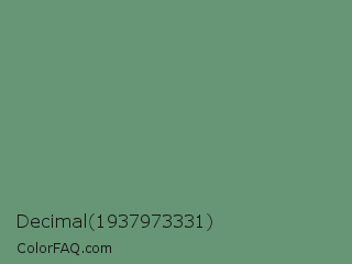 Decimal 1937973331 Color is a normal green color and the nearest color is Viridian Green #678975. Hex code #669675 and RGB value is rgb(102,150,117). In RGB color space, this color is composed of 40% red, 59% green, 46% blue, In CMYK color space, this color is composed of 32% cyan, 0% magenta, 22% yellow , 41% black , In HSL color space, this color has a hue angle of 139° , 19% saturation and 49% lightness.