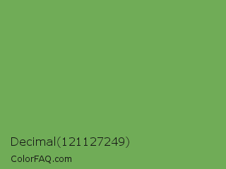 Decimal 121127249 Color is a normal green color and the nearest color is Asparagus Green #7ba05b. Hex code #70ac57 and RGB value is rgb(112,172,87). In RGB color space, this color is composed of 44% red, 67% green, 34% blue, In CMYK color space, this color is composed of 35% cyan, 0% magenta, 49% yellow , 33% black , In HSL color space, this color has a hue angle of 102° , 34% saturation and 51% lightness.