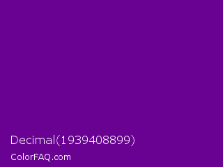 Decimal 1939408899 Color is a dark purple color and the nearest color is Purple #660099. Hex code #690293 and RGB value is rgb(105,2,147). In RGB color space, this color is composed of 41% red, 1% green, 58% blue, In CMYK color space, this color is composed of 29% cyan, 99% magenta, 0% yellow , 42% black , In HSL color space, this color has a hue angle of 283° , 97% saturation and 29% lightness.
