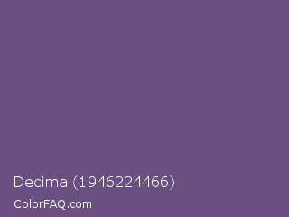 Decimal 1946224466 Color is a normal purple color and the nearest color is Dolphin #646077. Hex code #695080 and RGB value is rgb(105,80,128). In RGB color space, this color is composed of 41% red, 31% green, 50% blue, In CMYK color space, this color is composed of 18% cyan, 38% magenta, 0% yellow , 50% black , In HSL color space, this color has a hue angle of 271° , 23% saturation and 41% lightness.