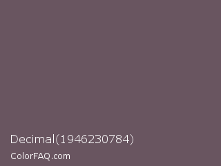 Decimal 1946230784 Color is a normal magenta color and the nearest color is Zambezi #685558. Hex code #695560 and RGB value is rgb(105,85,96). In RGB color space, this color is composed of 41% red, 33% green, 38% blue, In CMYK color space, this color is composed of 0% cyan, 19% magenta, 9% yellow , 59% black , In HSL color space, this color has a hue angle of 327° , 11% saturation and 37% lightness.