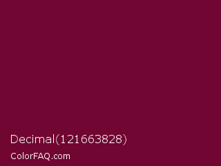 Decimal 121663828 Color is a dark rose color and the nearest color is Black Rose #67032d. Hex code #710632 and RGB value is rgb(113,6,50). In RGB color space, this color is composed of 44% red, 2% green, 20% blue, In CMYK color space, this color is composed of 0% cyan, 95% magenta, 56% yellow , 56% black , In HSL color space, this color has a hue angle of 335° , 90% saturation and 23% lightness.