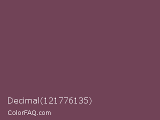 Decimal 121776135 Color is a normal rose color and the nearest color is Cosmic #76395d. Hex code #714357 and RGB value is rgb(113,67,87). In RGB color space, this color is composed of 44% red, 26% green, 34% blue, In CMYK color space, this color is composed of 0% cyan, 41% magenta, 23% yellow , 56% black , In HSL color space, this color has a hue angle of 334° , 26% saturation and 35% lightness.