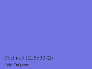 Decimal 121853072 Color is a light blue color and the nearest color is Medium Slate Blue #7b68ee. Hex code #7174e2 and RGB value is rgb(113,116,226). In RGB color space, this color is composed of 44% red, 45% green, 89% blue, In CMYK color space, this color is composed of 50% cyan, 49% magenta, 0% yellow , 11% black , In HSL color space, this color has a hue angle of 238° , 66% saturation and 66% lightness.