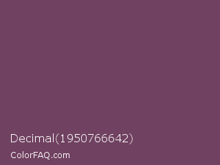 Decimal 1950766642 Color is a normal magenta color and the nearest color is Cosmic #76395d. Hex code #704160 and RGB value is rgb(112,65,96). In RGB color space, this color is composed of 44% red, 25% green, 38% blue, In CMYK color space, this color is composed of 0% cyan, 42% magenta, 14% yellow , 56% black , In HSL color space, this color has a hue angle of 320° , 27% saturation and 35% lightness.