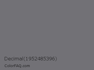 Decimal 1952485396 Color is a normal indigo color and the nearest color is Nickel #727472. Hex code #727176 and RGB value is rgb(114,113,118). In RGB color space, this color is composed of 45% red, 44% green, 46% blue, In CMYK color space, this color is composed of 3% cyan, 4% magenta, 0% yellow , 54% black , In HSL color space, this color has a hue angle of 252° , 2% saturation and 45% lightness.
