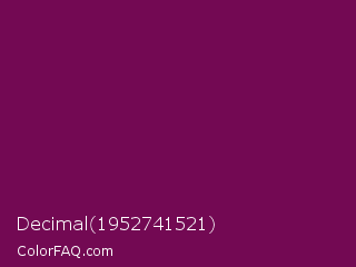 Decimal 1952741521 Color is a dark magenta color and the nearest color is French Plum #811453. Hex code #730953 and RGB value is rgb(115,9,83). In RGB color space, this color is composed of 45% red, 4% green, 33% blue, In CMYK color space, this color is composed of 0% cyan, 92% magenta, 28% yellow , 55% black , In HSL color space, this color has a hue angle of 318° , 85% saturation and 24% lightness.