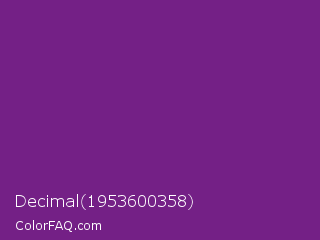 Decimal 1953600358 Color is a normal purple color and the nearest color is Seance #731e8f. Hex code #742086 and RGB value is rgb(116,32,134). In RGB color space, this color is composed of 45% red, 13% green, 53% blue, In CMYK color space, this color is composed of 13% cyan, 76% magenta, 0% yellow , 47% black , In HSL color space, this color has a hue angle of 289° , 61% saturation and 33% lightness.