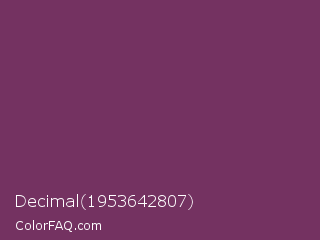 Decimal 1953642807 Color is a normal magenta color and the nearest color is Cosmic #76395d. Hex code #743261 and RGB value is rgb(116,50,97). In RGB color space, this color is composed of 45% red, 20% green, 38% blue, In CMYK color space, this color is composed of 0% cyan, 57% magenta, 16% yellow , 55% black , In HSL color space, this color has a hue angle of 317° , 40% saturation and 33% lightness.
