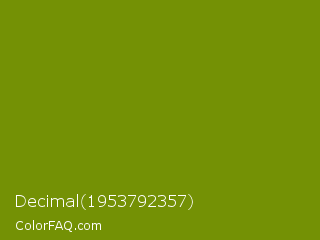 Decimal 1953792357 Color is a dark lime color and the nearest color is Limeade #6f9d02. Hex code #749105 and RGB value is rgb(116,145,5). In RGB color space, this color is composed of 45% red, 57% green, 2% blue, In CMYK color space, this color is composed of 20% cyan, 0% magenta, 97% yellow , 43% black , In HSL color space, this color has a hue angle of 72° , 93% saturation and 29% lightness.
