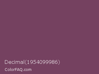 Decimal 1954099986 Color is a normal magenta color and the nearest color is Cosmic #76395d. Hex code #754160 and RGB value is rgb(117,65,96). In RGB color space, this color is composed of 46% red, 25% green, 38% blue, In CMYK color space, this color is composed of 0% cyan, 44% magenta, 18% yellow , 54% black , In HSL color space, this color has a hue angle of 324° , 29% saturation and 36% lightness.