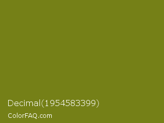 Decimal 1954583399 Color is a dark yellow color and the nearest color is Pacifika #778120. Hex code #758017 and RGB value is rgb(117,128,23). In RGB color space, this color is composed of 46% red, 50% green, 9% blue, In CMYK color space, this color is composed of 9% cyan, 0% magenta, 82% yellow , 50% black , In HSL color space, this color has a hue angle of 66° , 70% saturation and 30% lightness.