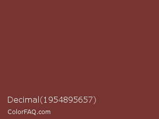 Decimal 1954895657 Color is a normal red color and the nearest color is Wine #722f37. Hex code #763531 and RGB value is rgb(118,53,49). In RGB color space, this color is composed of 46% red, 21% green, 19% blue, In CMYK color space, this color is composed of 0% cyan, 55% magenta, 58% yellow , 54% black , In HSL color space, this color has a hue angle of 3° , 41% saturation and 33% lightness.