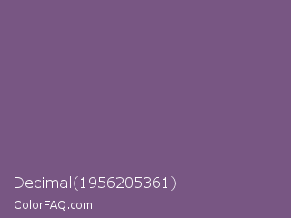Decimal 1956205361 Color is a normal purple color and the nearest color is Chinese Violet #856088. Hex code #785683 and RGB value is rgb(120,86,131). In RGB color space, this color is composed of 47% red, 34% green, 51% blue, In CMYK color space, this color is composed of 8% cyan, 34% magenta, 0% yellow , 49% black , In HSL color space, this color has a hue angle of 285° , 21% saturation and 43% lightness.