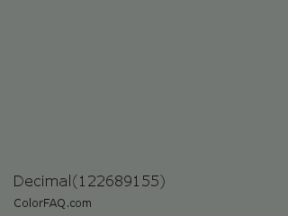 Decimal 122689155 Color is a normal green color and the nearest color is Nickel #727472. Hex code #727773 and RGB value is rgb(114,119,115). In RGB color space, this color is composed of 45% red, 47% green, 45% blue, In CMYK color space, this color is composed of 4% cyan, 0% magenta, 3% yellow , 53% black , In HSL color space, this color has a hue angle of 132° , 2% saturation and 46% lightness.