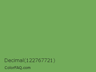 Decimal 122767721 Color is a normal green color and the nearest color is Asparagus Green #7ba05b. Hex code #72ab59 and RGB value is rgb(114,171,89). In RGB color space, this color is composed of 45% red, 67% green, 35% blue, In CMYK color space, this color is composed of 33% cyan, 0% magenta, 48% yellow , 33% black , In HSL color space, this color has a hue angle of 102° , 33% saturation and 51% lightness.