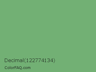 Decimal 122774134 Color is a normal green color and the nearest color is Iguana Green #71bc78. Hex code #72b074 and RGB value is rgb(114,176,116). In RGB color space, this color is composed of 45% red, 69% green, 45% blue, In CMYK color space, this color is composed of 35% cyan, 0% magenta, 34% yellow , 31% black , In HSL color space, this color has a hue angle of 122° , 28% saturation and 57% lightness.