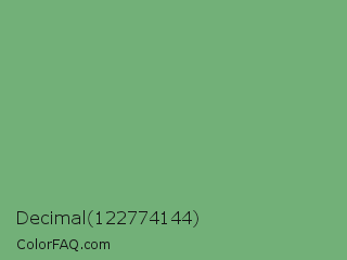 Decimal 122774144 Color is a normal green color and the nearest color is Iguana Green #71bc78. Hex code #72b078 and RGB value is rgb(114,176,120). In RGB color space, this color is composed of 45% red, 69% green, 47% blue, In CMYK color space, this color is composed of 35% cyan, 0% magenta, 32% yellow , 31% black , In HSL color space, this color has a hue angle of 126° , 28% saturation and 57% lightness.