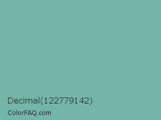 Decimal 122779142 Color is a normal cyan color and the nearest color is Green Sheen #6eaea1. Hex code #72b5a6 and RGB value is rgb(114,181,166). In RGB color space, this color is composed of 45% red, 71% green, 65% blue, In CMYK color space, this color is composed of 37% cyan, 0% magenta, 8% yellow , 29% black , In HSL color space, this color has a hue angle of 167° , 31% saturation and 58% lightness.