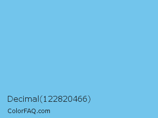 Decimal 122820466 Color is a light blue color and the nearest color is Maya Blue #73c2fb. Hex code #72c5ec and RGB value is rgb(114,197,236). In RGB color space, this color is composed of 45% red, 77% green, 93% blue, In CMYK color space, this color is composed of 52% cyan, 17% magenta, 0% yellow , 7% black , In HSL color space, this color has a hue angle of 199° , 76% saturation and 69% lightness.
