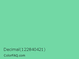 Decimal 122840421 Color is a light green color and the nearest color is Medium Aquamarine #66ddaa. Hex code #72d8a5 and RGB value is rgb(114,216,165). In RGB color space, this color is composed of 45% red, 85% green, 65% blue, In CMYK color space, this color is composed of 47% cyan, 0% magenta, 24% yellow , 15% black , In HSL color space, this color has a hue angle of 150° , 57% saturation and 65% lightness.