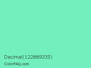 Decimal 122889335 Color is a light green color and the nearest color is Bermuda #7dd8c6. Hex code #72efbd and RGB value is rgb(114,239,189). In RGB color space, this color is composed of 45% red, 94% green, 74% blue, In CMYK color space, this color is composed of 52% cyan, 0% magenta, 21% yellow , 6% black , In HSL color space, this color has a hue angle of 156° , 80% saturation and 69% lightness.