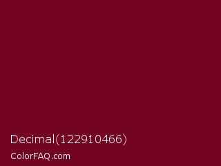 Decimal 122910466 Color is a dark rose color and the nearest color is Black Rose #67032d. Hex code #730426 and RGB value is rgb(115,4,38). In RGB color space, this color is composed of 45% red, 2% green, 15% blue, In CMYK color space, this color is composed of 0% cyan, 97% magenta, 67% yellow , 55% black , In HSL color space, this color has a hue angle of 342° , 93% saturation and 23% lightness.
