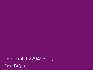 Decimal 122949890 Color is a dark magenta color and the nearest color is Midnight #702670. Hex code #73116e and RGB value is rgb(115,17,110). In RGB color space, this color is composed of 45% red, 7% green, 43% blue, In CMYK color space, this color is composed of 0% cyan, 85% magenta, 4% yellow , 55% black , In HSL color space, this color has a hue angle of 303° , 74% saturation and 26% lightness.