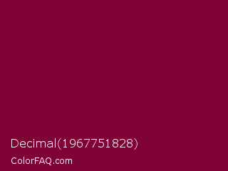 Decimal 1967751828 Color is a dark rose color and the nearest color is Siren #7a013a. Hex code #800336 and RGB value is rgb(128,3,54). In RGB color space, this color is composed of 50% red, 1% green, 21% blue, In CMYK color space, this color is composed of 0% cyan, 98% magenta, 58% yellow , 50% black , In HSL color space, this color has a hue angle of 336° , 95% saturation and 26% lightness.