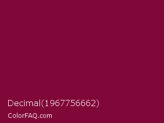 Decimal 1967756662 Color is a dark rose color and the nearest color is Siren #7a013a. Hex code #800838 and RGB value is rgb(128,8,56). In RGB color space, this color is composed of 50% red, 3% green, 22% blue, In CMYK color space, this color is composed of 0% cyan, 94% magenta, 56% yellow , 50% black , In HSL color space, this color has a hue angle of 336° , 88% saturation and 27% lightness.