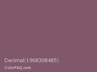 Decimal 1968308485 Color is a normal rose color and the nearest color is Falcon #7f626d. Hex code #805869 and RGB value is rgb(128,88,105). In RGB color space, this color is composed of 50% red, 35% green, 41% blue, In CMYK color space, this color is composed of 0% cyan, 31% magenta, 18% yellow , 50% black , In HSL color space, this color has a hue angle of 335° , 19% saturation and 42% lightness.