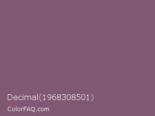 Decimal 1968308501 Color is a normal magenta color and the nearest color is Falcon #7f626d. Hex code #805873 and RGB value is rgb(128,88,115). In RGB color space, this color is composed of 50% red, 35% green, 45% blue, In CMYK color space, this color is composed of 0% cyan, 31% magenta, 10% yellow , 50% black , In HSL color space, this color has a hue angle of 320° , 19% saturation and 42% lightness.