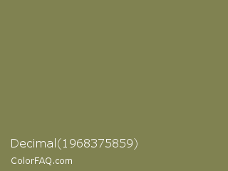 Decimal 1968375859 Color is a normal yellow color and the nearest color is Gold Fusion #85754e. Hex code #808251 and RGB value is rgb(128,130,81). In RGB color space, this color is composed of 50% red, 51% green, 32% blue, In CMYK color space, this color is composed of 2% cyan, 0% magenta, 38% yellow , 49% black , In HSL color space, this color has a hue angle of 62° , 23% saturation and 41% lightness.