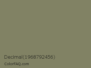 Decimal 1968792456 Color is a normal yellow color and the nearest color is Flax Smoke #7b8265. Hex code #818264 and RGB value is rgb(129,130,100). In RGB color space, this color is composed of 51% red, 51% green, 39% blue, In CMYK color space, this color is composed of 1% cyan, 0% magenta, 23% yellow , 49% black , In HSL color space, this color has a hue angle of 62° , 13% saturation and 45% lightness.