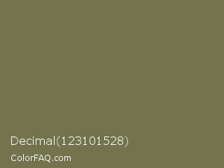 Decimal 123101528 Color is a normal yellow color and the nearest color is Go Ben #726d4e. Hex code #73734e and RGB value is rgb(115,115,78). In RGB color space, this color is composed of 45% red, 45% green, 31% blue, In CMYK color space, this color is composed of 0% cyan, 0% magenta, 32% yellow , 55% black , In HSL color space, this color has a hue angle of 60° , 19% saturation and 38% lightness.