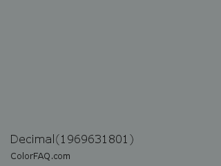 Decimal 1969631801 Color is a normal cyan color and the nearest color is Gunsmoke #828685. Hex code #828787 and RGB value is rgb(130,135,135). In RGB color space, this color is composed of 51% red, 53% green, 53% blue, In CMYK color space, this color is composed of 4% cyan, 0% magenta, 0% yellow , 47% black , In HSL color space, this color has a hue angle of 180° , 2% saturation and 52% lightness.