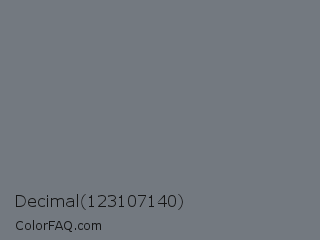 Decimal 123107140 Color is a normal blue color and the nearest color is Rolling Stone #747d83. Hex code #737980 and RGB value is rgb(115,121,128). In RGB color space, this color is composed of 45% red, 47% green, 50% blue, In CMYK color space, this color is composed of 10% cyan, 5% magenta, 0% yellow , 50% black , In HSL color space, this color has a hue angle of 212° , 5% saturation and 48% lightness.