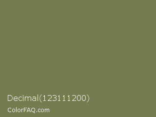 Decimal 123111200 Color is a normal lime color and the nearest color is Go Ben #726d4e. Hex code #737d50 and RGB value is rgb(115,125,80). In RGB color space, this color is composed of 45% red, 49% green, 31% blue, In CMYK color space, this color is composed of 8% cyan, 0% magenta, 36% yellow , 51% black , In HSL color space, this color has a hue angle of 73° , 22% saturation and 40% lightness.