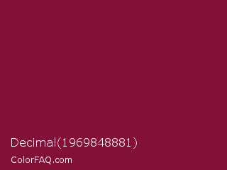 Decimal 1969848881 Color is a dark rose color and the nearest color is Claret #7f1734. Hex code #831037 and RGB value is rgb(131,16,55). In RGB color space, this color is composed of 51% red, 6% green, 22% blue, In CMYK color space, this color is composed of 0% cyan, 88% magenta, 58% yellow , 49% black , In HSL color space, this color has a hue angle of 340° , 78% saturation and 29% lightness.