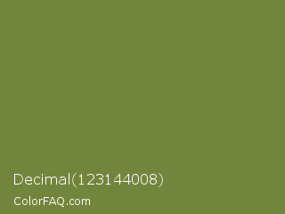 Decimal 123144008 Color is a normal lime color and the nearest color is Pesto #7c7631. Hex code #73853c and RGB value is rgb(115,133,60). In RGB color space, this color is composed of 45% red, 52% green, 24% blue, In CMYK color space, this color is composed of 14% cyan, 0% magenta, 55% yellow , 48% black , In HSL color space, this color has a hue angle of 75° , 38% saturation and 38% lightness.